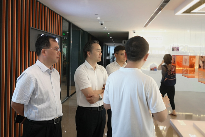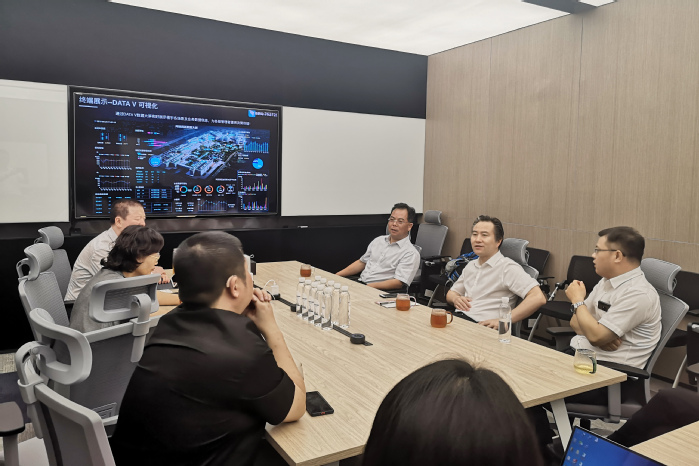 在阿里数字化园区,汤正华一行参观考察了阿里数字化管理系统。企业负责人就钉钉系统软硬件、数字化校园建设等议题作了详尽介绍。双方围绕下一步合作展开了交流和探讨。