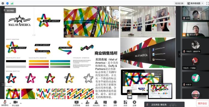 章总首先介绍环境体验设计框架、品牌的四个不同方面,概述了品牌环境的内涵和作用,重点讲解了品牌环境体验框架和品牌环境体验设计实操。针对本课程的实践项目,章总结合国际知名的体验店、旗舰店等多个案例分享品牌环境体验设计的具体方法:通过终端系统的视觉设计和空间陈列软环境装饰设计拓展和强化品牌识别CIS体系;将零售空间整体、建筑外观或者空间中的结构、家具、陈设设计成品牌终端形象;通过对整体环境、个别场景、体验流程的设计,传达出品牌自身独特的个性化视觉风格。最后章总分享了自己微信公众号、微博账号,里面积攒了他多年的设计心得和几百个案例分析,方便同学们后续交流和学习。