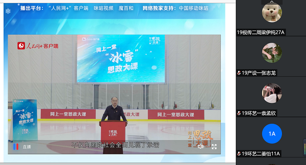 2022年4月16日下午,艺术与设计学院组织全体团学干部共同观看“同上一堂冰雪思政课”。