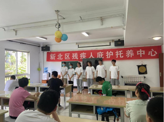 活动开始,我们的志愿者同学们首先与天禄残疾人庇护托养中心的小朋友们进行了自我介绍。今天参加志愿活动的同学中有一部分是来自艺术与设计学院“爱翼启”青年志愿者协会的成员,她们已经在这里开展了多次志愿者活动,因此对小朋友们比较熟悉,很快便和他们建立了良好的沟通。其他同学虽然是第一次来到这里,但是也受到了来自小朋友的热情欢迎,不一会儿就融入到他们中去了。