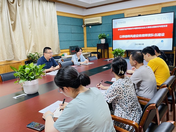 6月28日下午,艺术与设计学院第一教工党支部领导干部讲党课活动在巫山路校区1号楼319会议室召开。艺术与设计学院党委书记赵可恒以《以师德师风建设统领师资队伍建设》为题,为第一教工党支部党员讲党课。