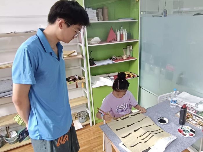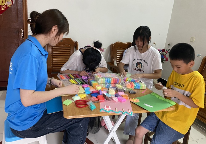 活动开展前,张政组织团队进行培训,就实践安全、实践内容、项目验收等事项进行部署。暑假期间,团队成员回到各自家乡,深入基础教育薄弱地区和乡(镇)村学校,以专业技能为依托,教授留守儿童及贫困家庭儿童手工、书法、绘画等,通过艺术元素与创意设计相结合,为孩子们打造一个充满想象力和创造力的教育环境。