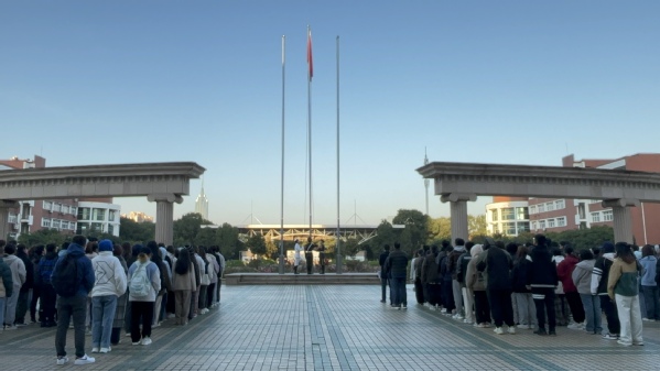 11月13日,艺术与设计学院于巫山路校区图书馆前举行升旗仪式。学院党委书记赵可恒、党委副书记万莹、辅导员及全体23级学生参加仪式。