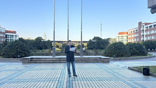 最后,赵可恒做国旗下讲话,他勉励同学们要志存高远,践行社会主义核心价值观;珍惜时光,提升知识储备和专业技能;敢于实践,争做勇于创新的时代新人,用奋斗擦亮青春的底色,不负这个伟大时代!