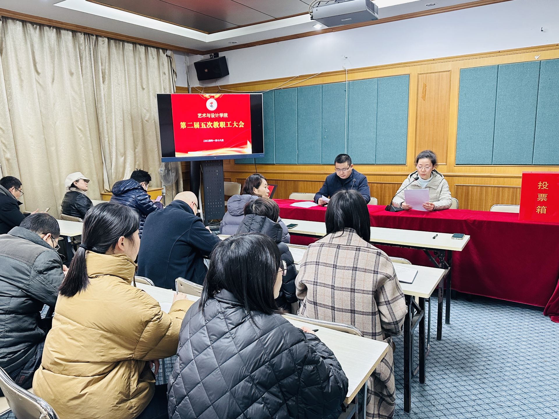 2024年1月18日下午,艺术与设计学院在巫山路校区1号楼301会议室召开第二届教职工大会第五次会议,学院党政领导和全体教职工参加会议,会议由学院党委书记赵可恒主持。