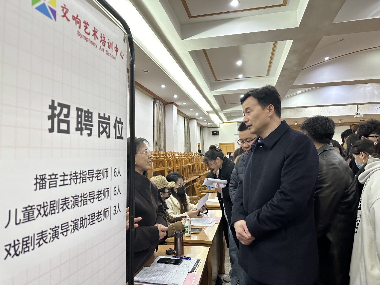 抢抓春招黄金期,千方百计促就业。为深入贯彻省、市关于高校毕业生就业工作的决策部署,全力做好毕业生就业服务工作,艺术与设计学院协同人文学院于3月27日在巫山路校区联合举办常州工学院2024年文科专场校园招聘会。副校长刘春节莅临指导,两院领导、系主任、毕业班班导师、就业辅导员及2024届毕业生参加了本次活动。