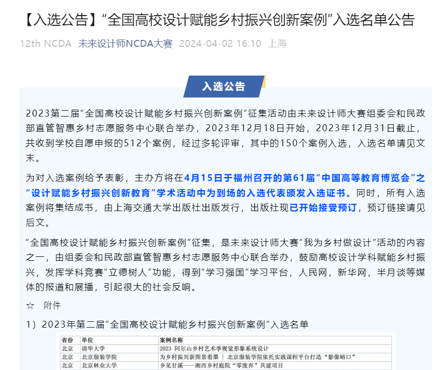 2023第二届“全国高校设计赋能乡村振兴创新案例”