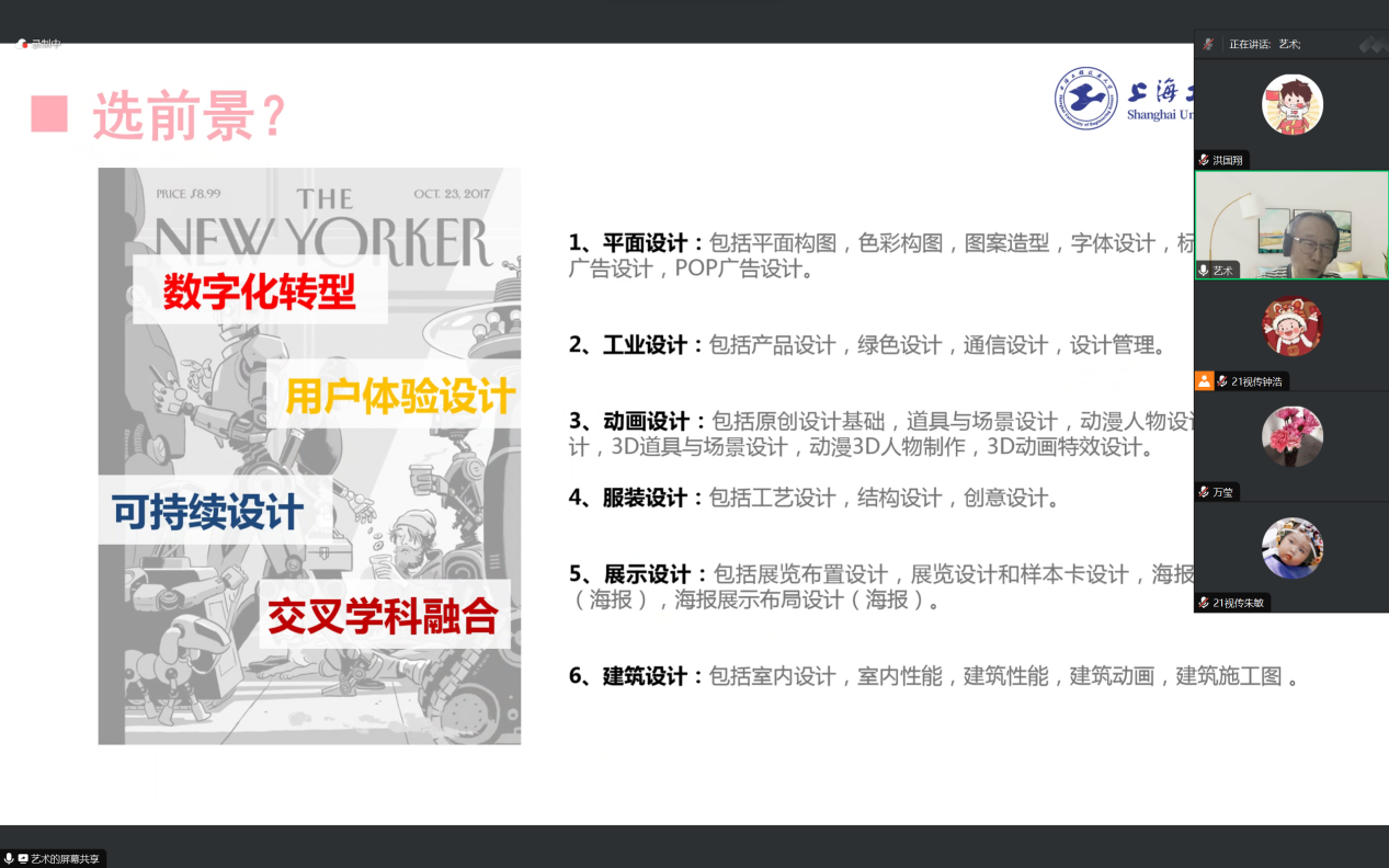 5月21日上午,一场别开生面的专家云课堂在艺术与设计学院如期举行。本次课堂聚焦考研专题指导,邀请了上海工程技术大学艺术与设计学院院长高瞩进行深度解析。通过线上直播的形式,师生齐聚一堂,共同聆听了这场知识盛宴。这也是学院推动“双进行动”的有力举措。