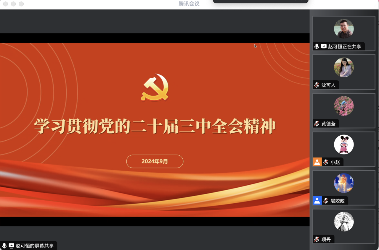 赵可恒指出,学习贯彻党的二十届三中全会精神,是当前和今后一个时期的一项重大政治任务,全体教职工要提高政治站位,坚定用党的二十届三中全会精神统一思想、统领全局、统揽工作,切实把学习成效转化为推动学院事业高质量发展的生动实践。万莹结合学生工作,勉励全体学生干部及学生党员要学深悟透全会精神,坚定理想信念,感悟思想伟力,汲取精神力量,明确新时代青年在国家改革发展大局中的责任与担当。