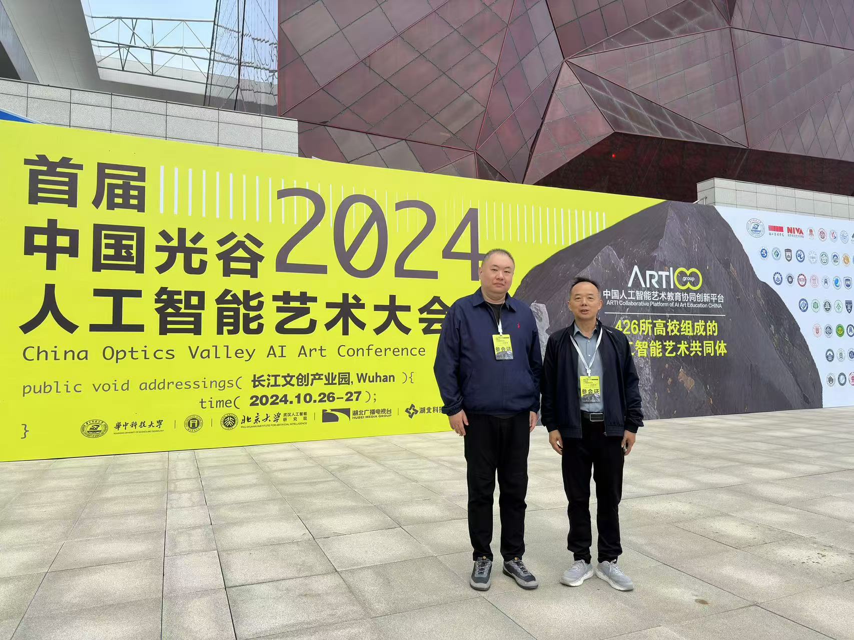 近日,2024年首届中国光谷人工智能艺术大会在湖北省武汉市长江文创产业园举行。众多行业专家、知名艺术家、创意人齐聚一堂,共同探讨人工智能与艺术的融合发展,艺术与设计学院唐李阳、樊天岳两位老师参与了此次会议。