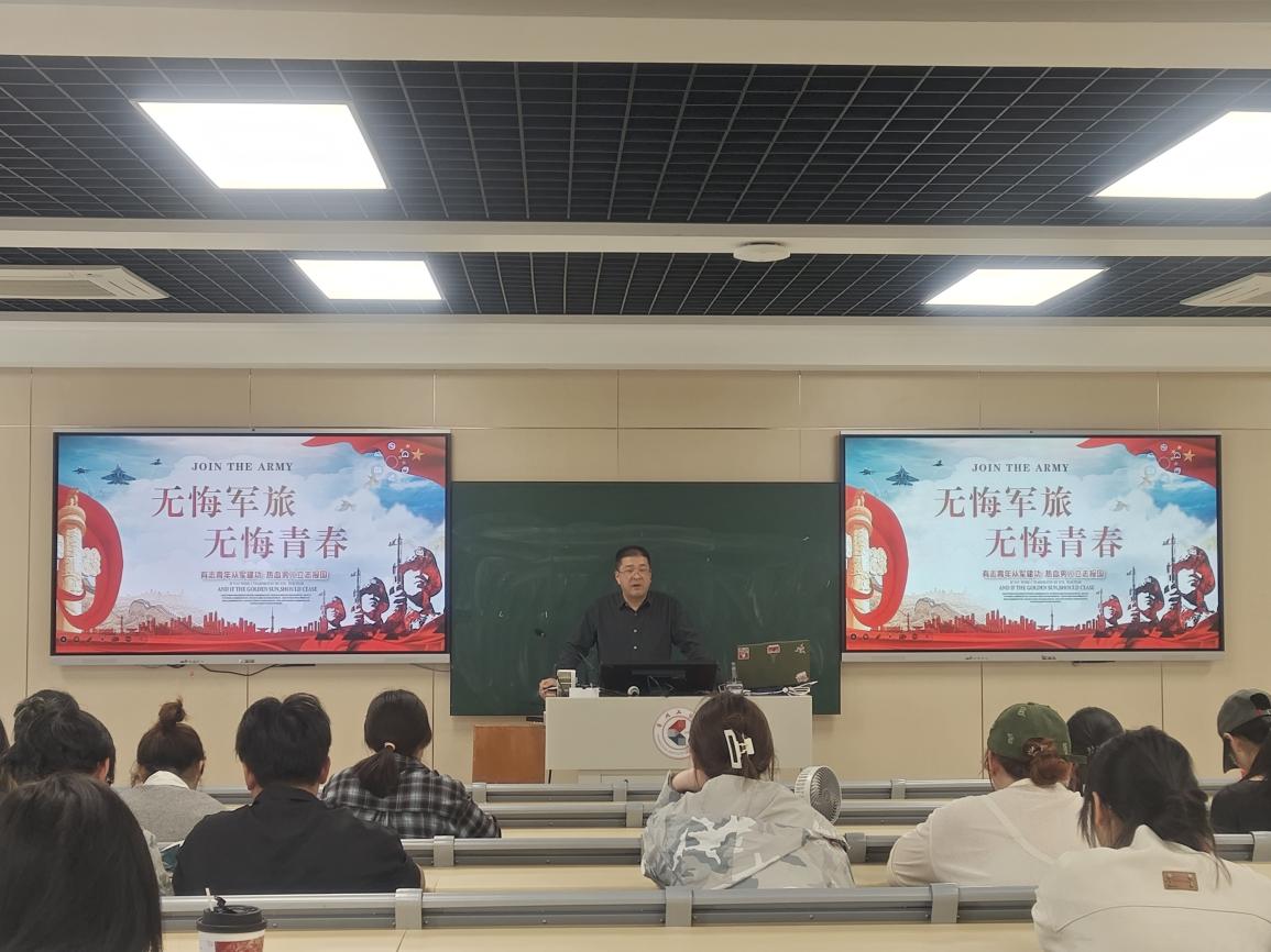 活动邀请校人民武装部国防教育教师陶辉俊为同学们详细解读了大学生参军入伍的报名流程、体检要求、政考标准及相关优惠政策。陶老师特别强调了国家在退役军人教育资助方面的优惠政策,并为有参军意向的同学提供指导,鼓励同学们勇敢追求自己的军旅梦想。