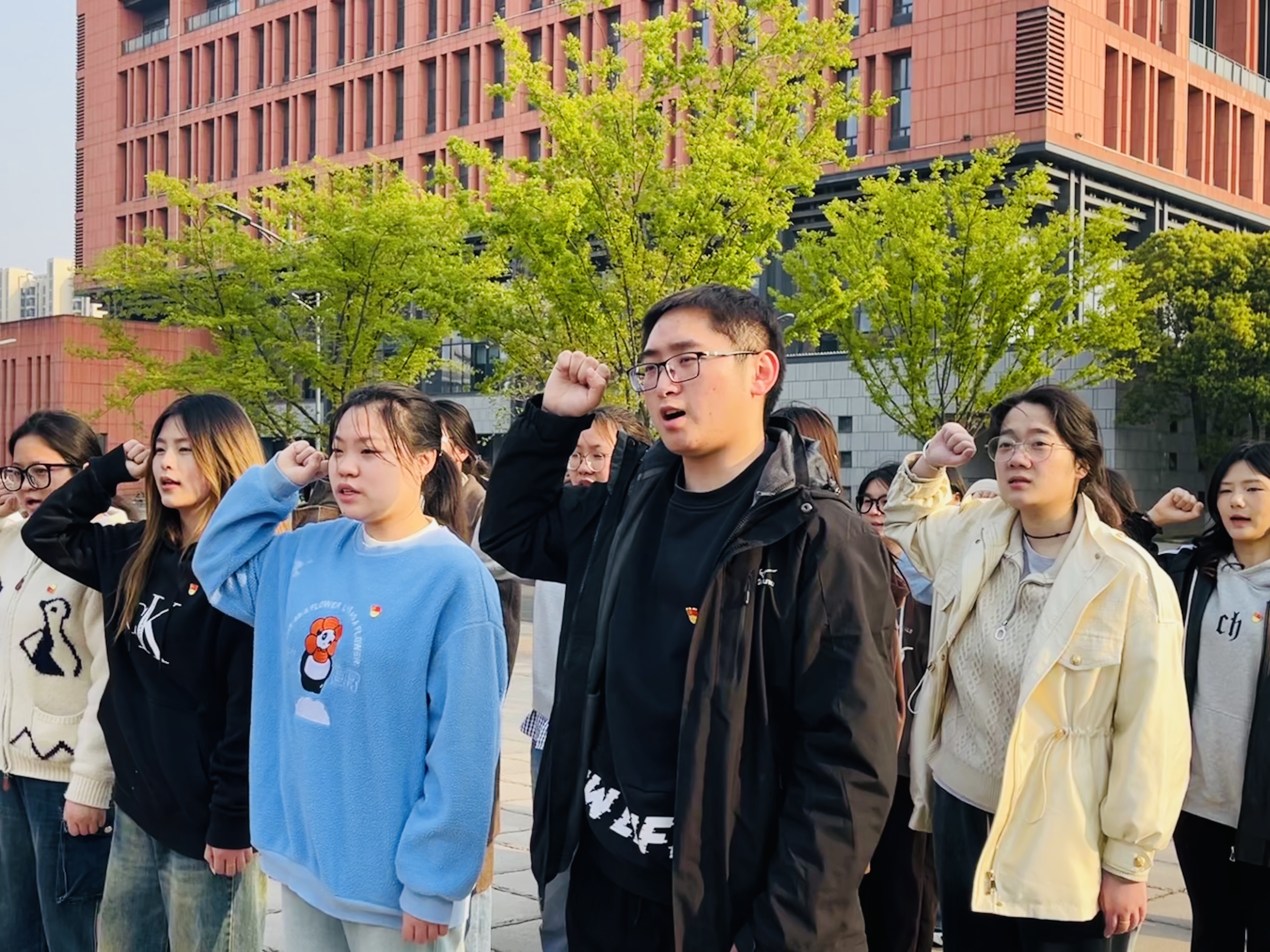 4月2日,艺术与设计学院在“常州三杰”文化广场举行2024年下半年新党员入党宣誓仪式。学院党委副书记万莹,学生党支部书记李志威、刘伟敏,13名新发展党员及正式党员代表参加。专职组织员沈可人主持仪式。