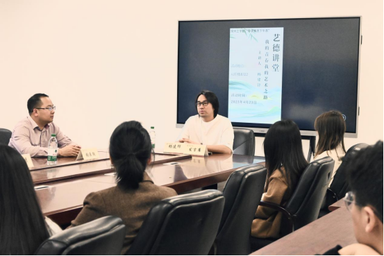 4月23日下午,学院还邀请杨建锋回校为学院年轻的学子们举办一场名为“我的青春,我的艺术之路”的导学青思下午茶活动。活动现场氛围轻松愉悦,杨建锋结合自身丰富经历,分享了青春岁月里在艺术道路上的探索、挑战与收获。学子们积极提问,就专业学习、职业规划、艺术创作等方面寻求建议。此次活动为学子们搭建了与优秀校友近距离沟通的桥梁,激励着他们在青春的赛道上勇敢追逐艺术梦想。
