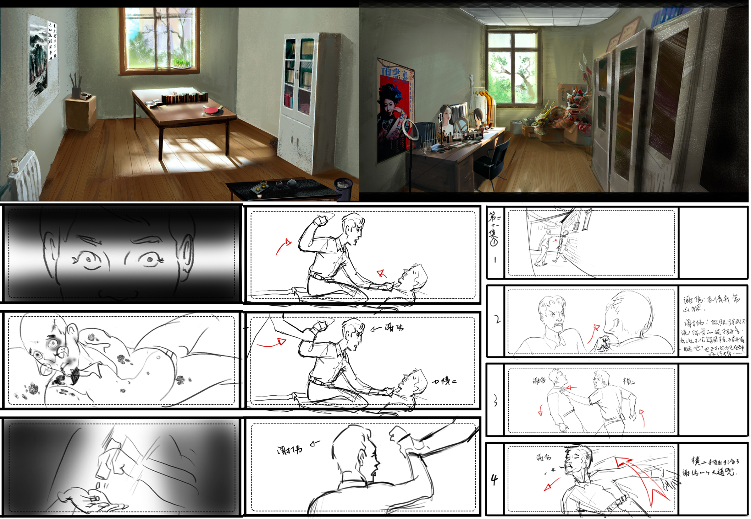 上图为部分概念设计图及分镜头设计