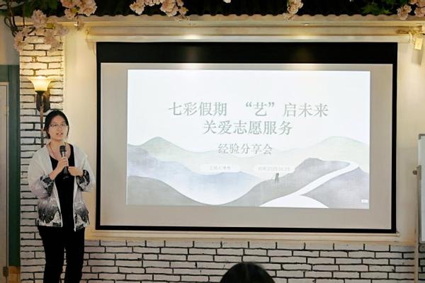 会上,万莹向大学生志愿服务基地“一米田心自然学堂”授牌。随后,2024年校优秀社会实践团队七彩假期‘艺’启未来 关爱志愿服务团队负责人李想汇报实践成果和心路历程,分享经验和做法。最后,万莹作总结讲话,她强调,社会实践是青年成长的重要途径,希望同学们带着责任与热忱,深入基层、贴近群众,用专业知识传递温暖,用青春力量书写使命担当。