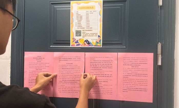 活动前期,通过进宿舍、入课堂、专题座谈会等一系列举措,了解宿舍楼内各项基础设施的建设,听取汇总了学生对校园生活的意见与建议。之后,学院主动将思政力量、服务力量、管理力量下沉到学生中间,组织收集各类学生常用的校园服务信息,内容包含卫生室、校园110、图书馆、公寓楼管理室及维修等,以海报形式张贴到学生公寓,将“便民服务”落在实处。同时,为进一步夯实校园安全管理,推动安全教育工作常态化,筑牢学生的安全意识。学院每个寝室张贴了《学生公寓管理规定》,勉励学生将安全意识根植于心中,做到寝室生活安心安定安稳安全。