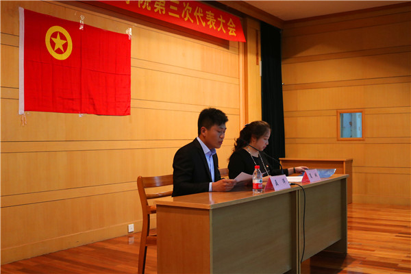 大会伊始,艺术与设计学院副书记周琳代表学院领导致开幕词。周书记表示,我院学生应当深刻贯彻“艺科结合,协同创新”的精神,加强组织建设,发挥我院的专业优势,展现我院学生的风采。校团委书记吕莹璐发表贺词,希望我院学生能再接再厉,创出更好的成绩。最后,校党委常委、组织部部长章瑜发表讲话,对我院各项工作给予肯定,并祝贺我院第三次团员代表大会的顺利召开。