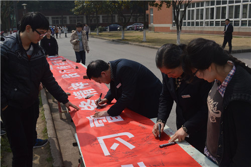 为大力弘扬和传承雷锋精神,积极倡导“奉献他人、提升自己”的志愿服务理念,2015年3月13日中午,艺术与设计学院“雷锋月”系列活动启动仪式在新北校区食堂门口正式举行,本次启动仪式以倡议签名的形式开展,院党委副书记罗兰英、各系系主任、团委老师都来到活动现场参加活动。