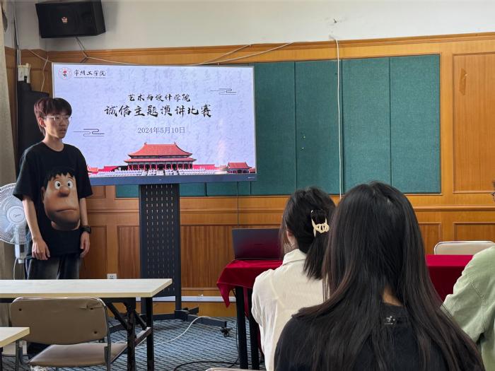 为深入践行社会主义核心价值观,进一步提升大学生诚信素养,5月10日,艺术与设计学院在1号楼301会议室成功举办了“诚立身、信立德、学立志”主题演讲比赛,比赛由院学生会主席团担任评委,17名同学参加。
