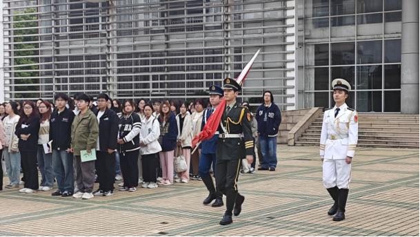 2024年4月29日,艺术与设计学院在图书馆门口举行了升旗仪式。全体23级艺术与设计学院同学集合,教师代表包括院党委副书记万莹副书记、学工办主任张乐陶和辅导员刘伟敏。 国旗护卫队迈着整齐的步伐,展现出英姿勃发的精神风貌。在激昂的国歌声中,鲜艳的五星红旗冉冉升起,迎风飘扬。 院学生会执行主席钟浩作为学生代表进行了国旗下发言,他鼓励每一个青年都应该有梦想、有志向、有责任,并付诸行动,共同肩负起时代的使命,创造更加美好的明天。 升旗仪式结束后,院党委副书记万莹进行了国旗下讲话。她表达了对同学们的深切厚望,并以五四青年节和五一国际劳动节为契机,进一步激发爱国热情、弘扬劳动精神,鼓励同学们积极投身艺术实践和社会实践之中,用自己的实际行动践行社会主义核心价值观和时代精神。