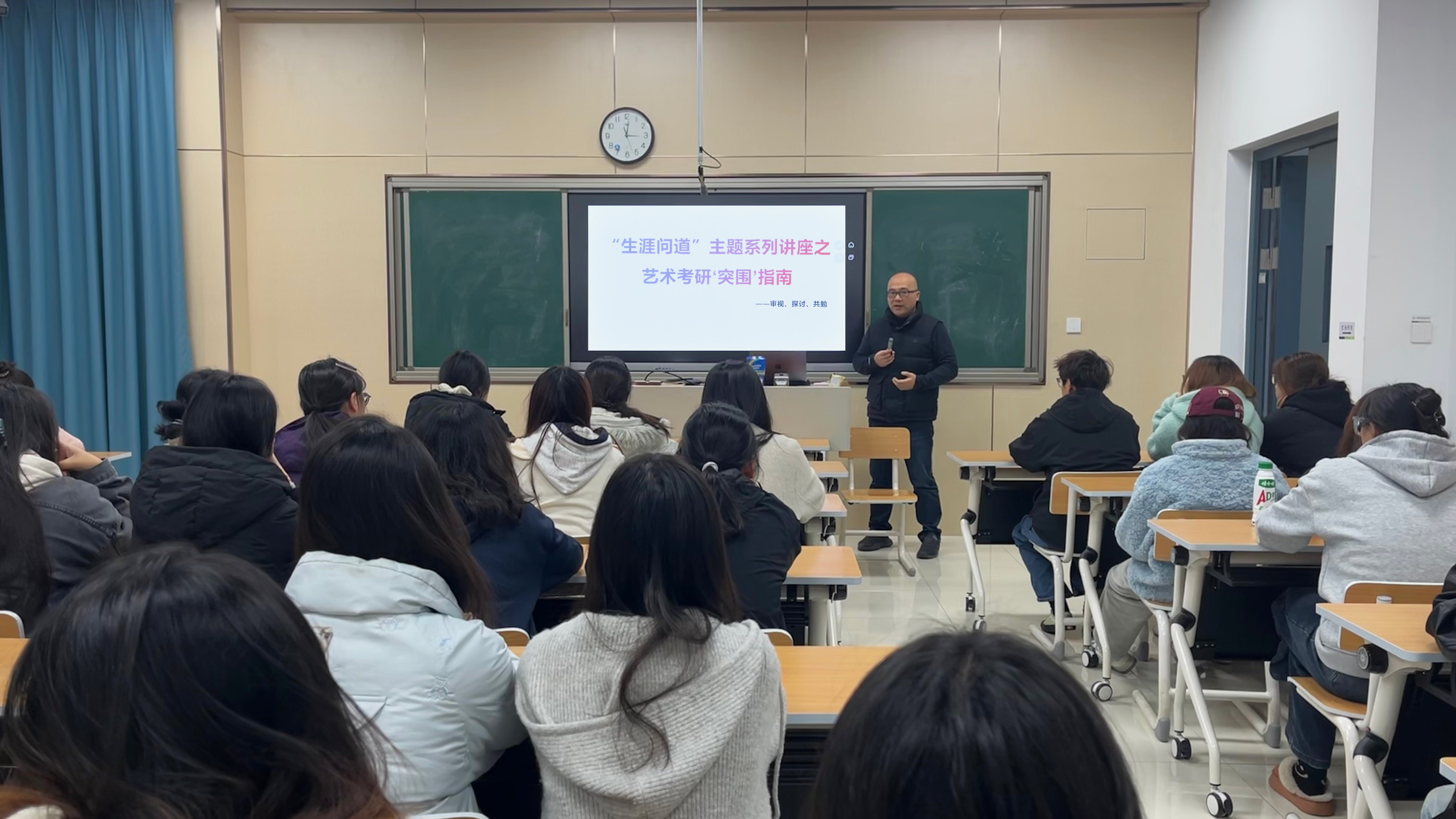 为深化职业生涯教育,精准赋能艺术学子规划升学路径,2025年11月19日,艺术与设计学院成功举办 “生涯问道” 主题系列讲座之艺术考研 “突围” 指南。学院副院长彭伟担任主讲人。